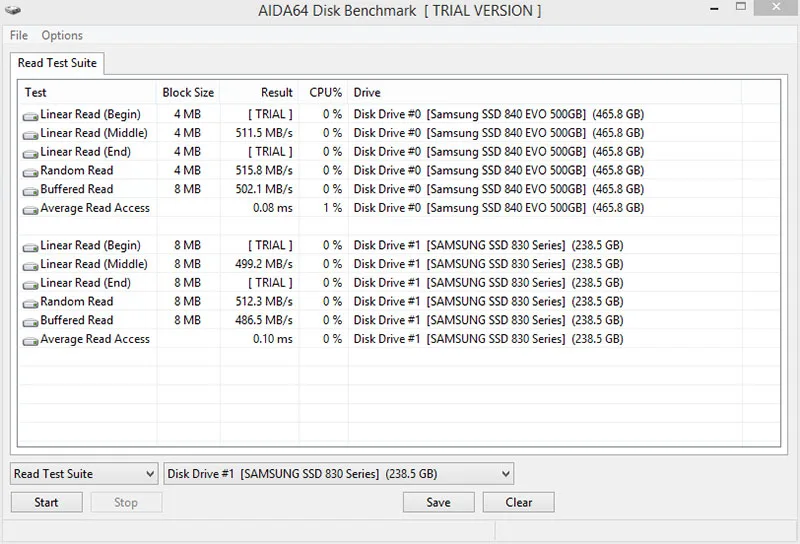 You can find more information for each benchmark by selecting the “About” on the drop down menu found at the bottom left of the window, right above the list of benchmarks. I tried out the Read Test Suite on both my Samsung 840 EVO and Samsung 830 Series SSD. Below is the result I got. Unless I missed it, but I didn’t find a benchmark for write.