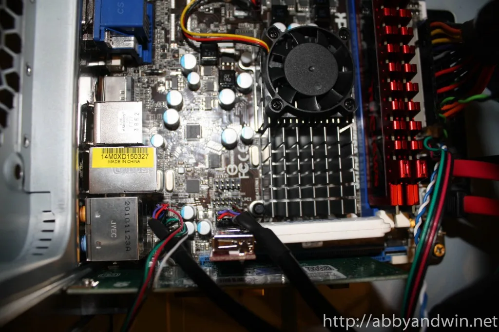I’ve been playing around with the idea of getting one of those low powered CPU and running ESXi on it. I finally got a chance to playing around with one. I picked up an Asrock E350M1/USB3 from Newegg. I also got a G.Skill 8GB of ram installed. Unfortunately, the ram and mobo/cpu weren’t on sale but I was too excited and curious to wait. I used old parts for the build. An Antec 300 case, an Intel PCIE NIC card, a USB header adapter, and a 1GB USB flash drive. I have a few HDDs lying around as well and a Corsair 500W PSU.