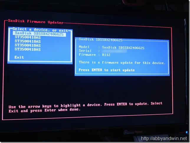 Last night I got a BSOD with an error called DPC_Watchdog_Violation. I searched for it and many claim it might have something to do with my SSD and its firmware being old. I’m running a SanDisk Extreme SDSSDX240GG25 with firmware R112. Apparently it’s an old version so I decided to update it. I installed the toolkit and it told me the latest (as of February 8, 2013) is R211. I went ahead and created a USB boot disk from the utility.