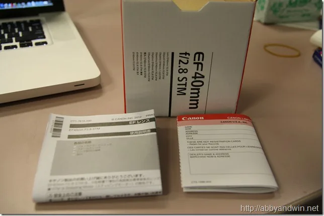 Canon released a new lens back in June 2012. It’s the 40mm f/2.8 STM lens. It’s using the new STM (stepping motor).With this feature, it allows for a very quiet focusing during video capture. I was able to play with the lens at the store using a Canon T4i (at the moment, the only camera that fully uses the STM). The lens performed well in low light environments. It focuses fast and near-silent. I took some pics during my unboxing. Also took pics with my other lens for comparison.