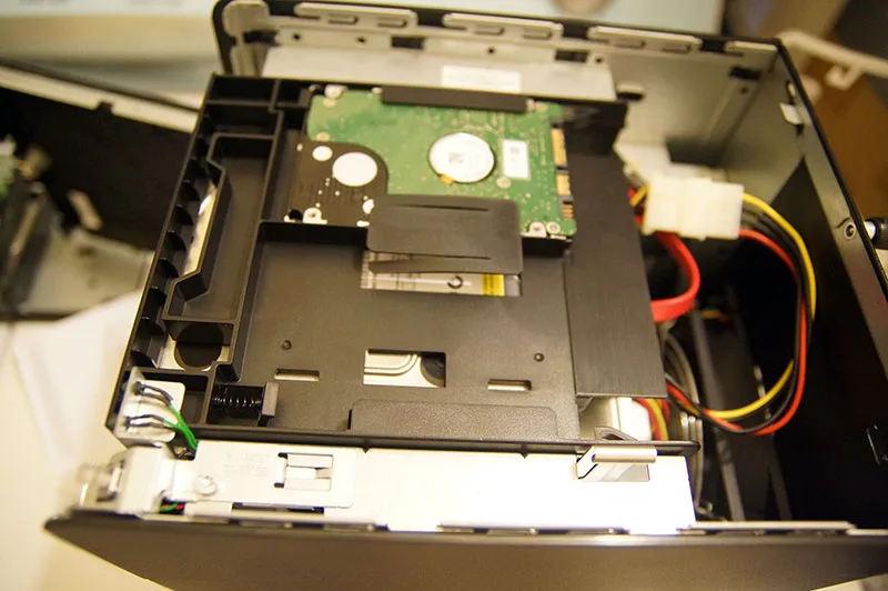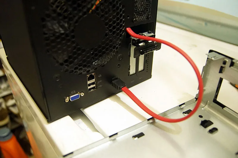 Above is the eSATA to SATA cable adapter. I have it run through a hole from the back, through the upper part of the case.
