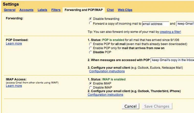 iMAP4 finally became available on my Gmail account. I’ve been waiting for weeks now. Check and see if yours is enabled. If not make sure your language is set to English (US). I’ll be trying it on Mail 2.0.