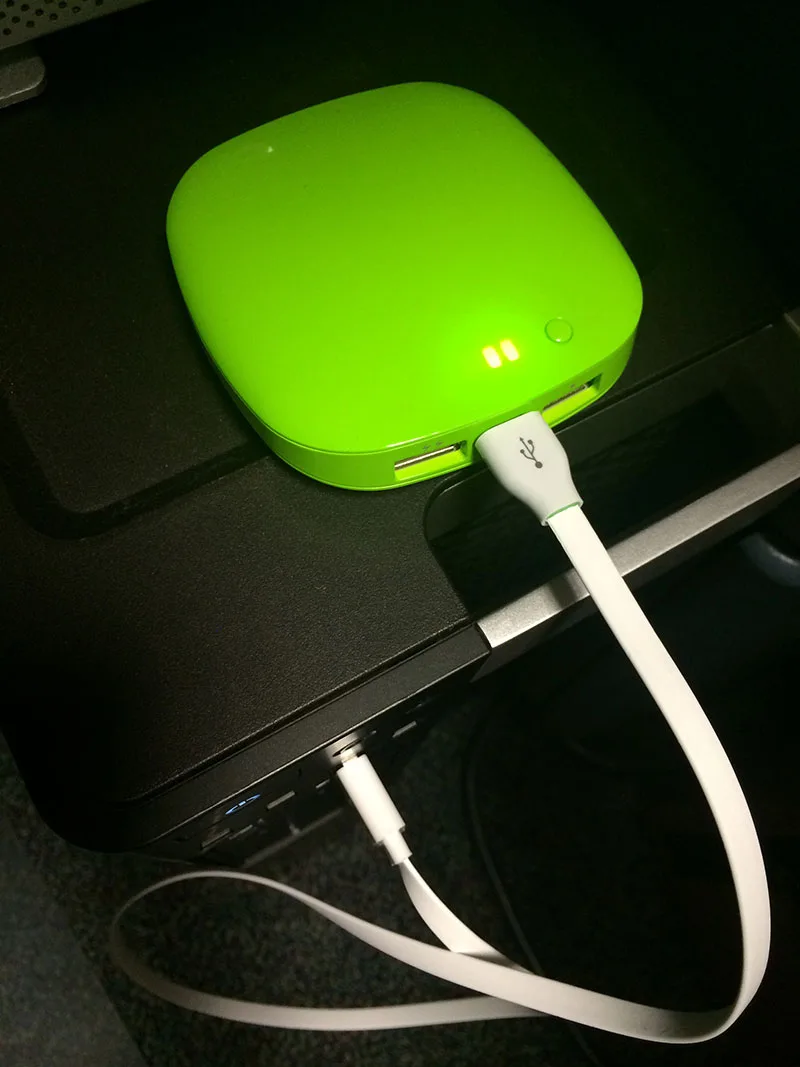 I’m charging it using a computer. The LED on the bottom shows how much charge it currently has. It’s showing 2 of 4.