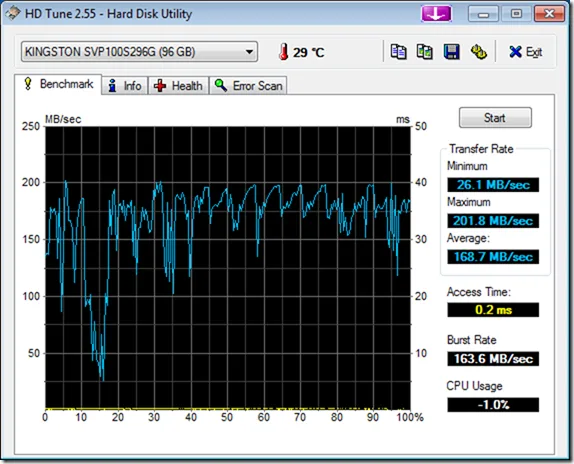 SSD benchmark with Windows 7 SP1.