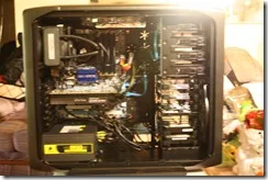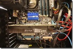 EVGA nVidia GTX470SC: It’s not the high end video card in the series but works great. It has CUDA and works great with Adobe software. I have already used Adobe Premiere Elements 9 and exported an HD video to 1080i, 25fps. At the same time, I played Starcraft 2 on ultra settings. The computer remained stable and responsive. I was very impressed. All 8 cores were at 100% and ran around 52-65 C and the video card ran at around 84 C. Starcraft 2 was running at about 52-58FPS. I was able to ALT+Tab between applications, play HD videos off Youtube and watch an HD video off my hard drive.